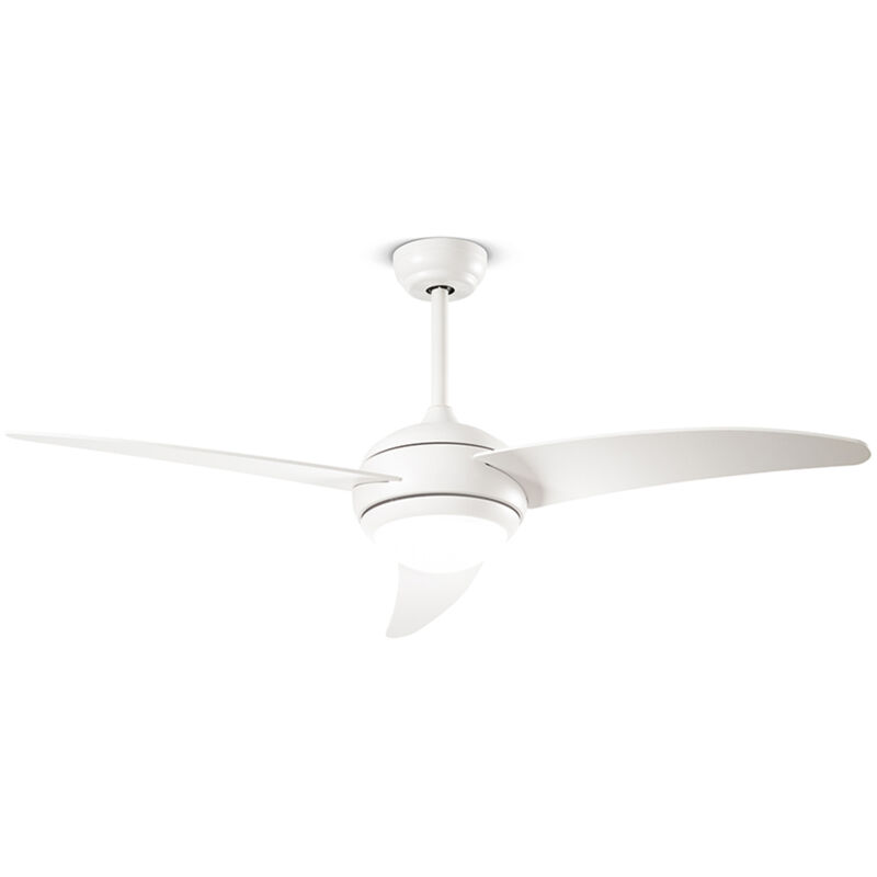 Ventilatore da soffitto in metallo bianco opaco con 3 pale in legno verniciato bianco, 3 velocità, kit luce da 24watt a led con diffusore in acrilico satinato . Ventilatore da soffitto di design, molto elegante con telecomando a onde radio incluso. Questo ventilatore da soffitto dispone dell'ultima tecnologia con un motore AC, molto più silenzioso, con un consumo inferiore rispetto ai normali ventilatori e molto più stabile. Ventilatore da soffitto con luce a led da 24watt, ideale da applicare in tutti gli ambienti residenziali moderni come saloni, camere da letto o uffici. Molto richiesto anche per studi professionali, showroom e negozi. Questo prodotto si utilizza particolarmente nelle abitazioni grazie al suo design moderno e all'ultima tecnologia del motore AC. Molto apprezzato negli uffici professionali e studi tecnici, perché molto più silenzioso rispetto ad un classico ventilatore e molto elegante essendo alto solamente 39cm. Materiale: Metallo bianco opaco con pale in legno