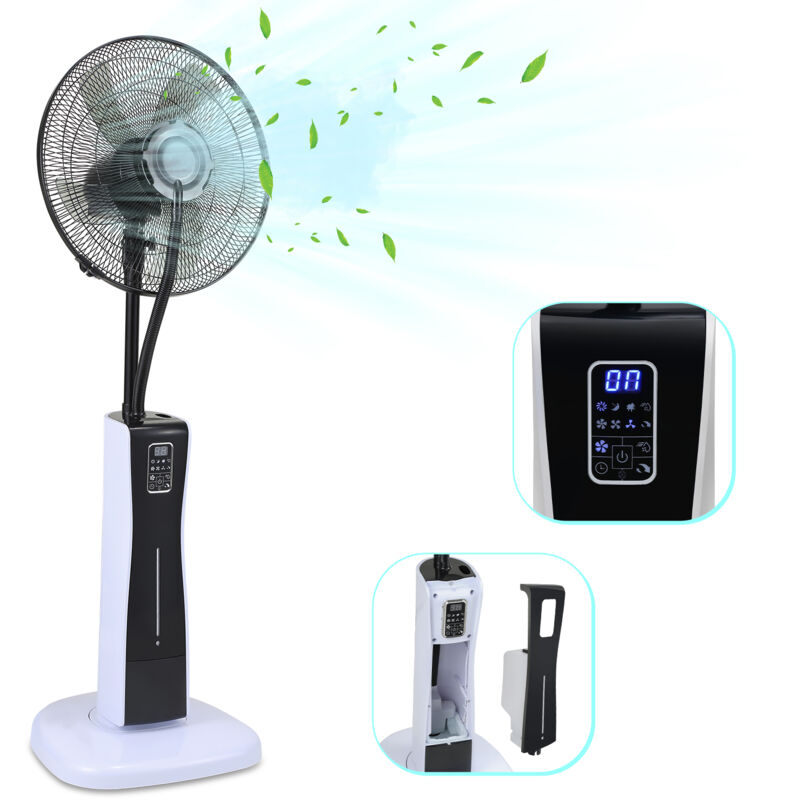 funzione timer regolabile da 0 a 12 ore. 【Display a LED e telecomando】Il nostro ventilatore per ambienti è dotato di touch screen a LED e telecomando. in modo da poter controllare il circolatore d'aria in due modi. Telecomando con portata di 10 m e 6 pulsanti operativi . CONTENUTI DEL PRODOTTO: Ventilatore a cestello da 43 cm Acqua nebulizzata a ultrasuoni particolarmente fresca Grande serbatoio dell'acqua da 2 litri con indicatore a LED per un raffreddamento di lunga