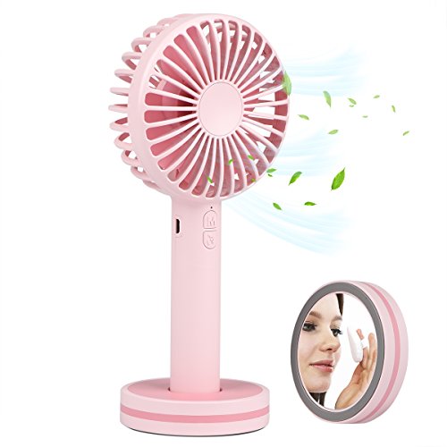 Mini Ventilatore Portatile,Accering USB Ventilatore Handheld Fan with Makeup Mirror for Office, Home, Traveling (Rosa)