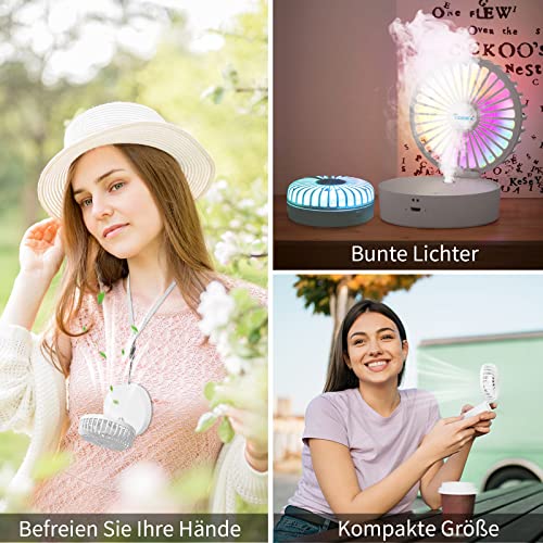 Ventilatore a mano,mini ventilatore portatile con nebbia fredda e batteria ricaricabile,piccolo ventilatore tascabile pieghevole,luci notturne a 7 colori,ventilatore USB per viaggi,ufficio(bianco)