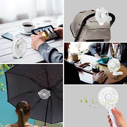 【MULTI-FUNZIONALE】 Con un design a maniglia umanizzata, è pieghevole, può essere utilizzato come ventola da tavolo o ventilatore portatile. Può anche appendere la ventola sopra l'ombrello o l'ombrello. Il design è ideale per le folle all'aperto e non devi preoccuparti degli spazi aperti anche quando la temperatura è elevata.