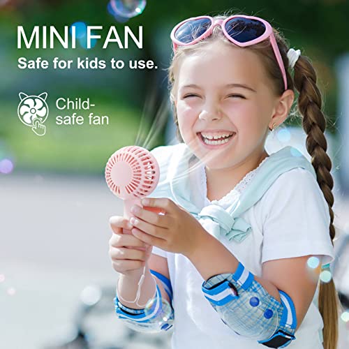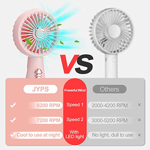 Ventilatore portatile portatile, potente mini ventilatore USB con batteria ricaricabile e luci a LED, carino piccolo ventilatore elettrico personale per bambini a scuola/viaggi all'aperto