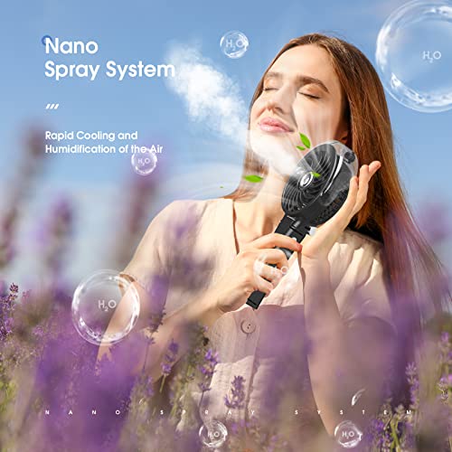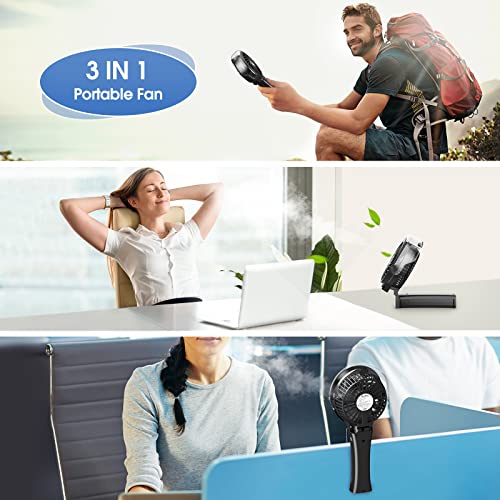 Mini Ventilatore Portatile USB Ricaricabile con Umidificatore,Piccolo Ventilatore Portatile Pieghevole a Batteria,Ventilatori Portatili Auto da 3000mAh,Ventilatore Campeggio con 3 Modalità (nero)