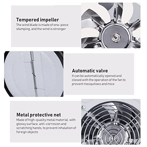 Forte e robusto: la ventola di scarico è realizzata in materiale metallico. È antistatico, conservante, anti-invecchiamento, durevole e di lunga durata. Il ventilatore da parete ha quattro fori, la ventola di scarico può essere fissata alla parete con viti, installazione rapida e comoda.