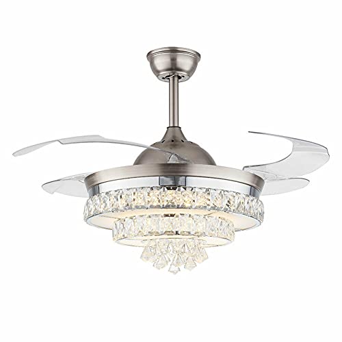 Ventilatore da soffitto in cristallo,Lampadario in cristallo ventilatore a soffitto dimmerabile, Ventilatore da soffitto da 42" in cristallo con pale retrattili e telecomando.