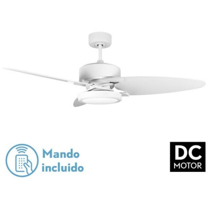 Ventilatore DC serie CROSS colore BIANCO con 3 pale REVERSIBILI colore BIANCO/FAGGIO. Realizzato in metallo, MDF e policarbonato. Ha una misura di 39,4/54,6x132x132 centimetri. Tecnologia LED integrata dalla potenza di 30W, con 3 TEM