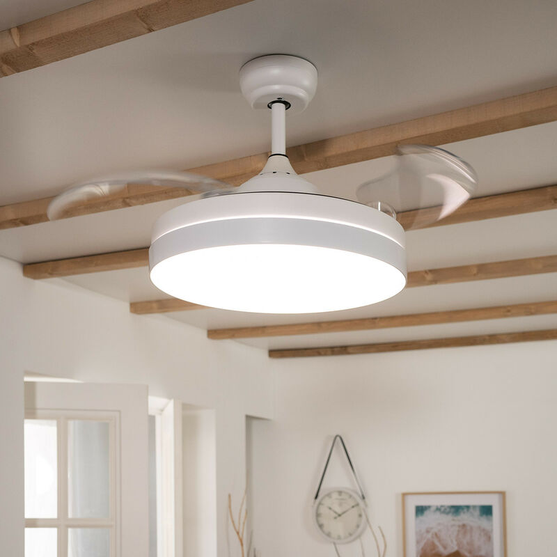 El Ventilatore da Soffitto LED Dalori Bianco 106cm Motore DC incorpora un LED da 36W e presenta un look industriale e moderno che lo rende un elemento altamente decorativo oltre che funzionale. Caratteristiche del Ventilatore da Soffitto LED Dalori Bianco 106cm Motore DC Il ventilatore incorpora un motore DC che si distingue per la sua leggerezza, durata, efficienza e basso consumo energetico . Alcuni dei vantaggi di un ventilatore con motore DC rispetto a un ventilatore con motore AC sono: - Ventilatore estremamente silenzioso e senza vibrazioni. Grazie al suo motore DC possiamo ridurre il rumore emesso dal ventilatore, fino al 50% rispetto ai motori AC, rendendo il ventilatore perfetto per le stanze di riposo, studio e lavoro. - Basso consumo. I ventilatori con motore DC consumano fino al 70% in meno di energia rispetto ai motori AC, questo significa un risparmio nella bolletta elettrica della nostra casa. - Sono più veloci a mettersi in funzionamento, cambiare velocità e fermarsi.