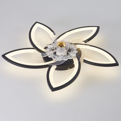 Ventilatore da Soffitto con Luce, 70cm, Dimmerabile LED Plafoniere con Telecomando e APP, 6- Marce Ventola da Soffitto inversione senso di rotazione, Temporizzazione Ventola Silenziosa (Nero)