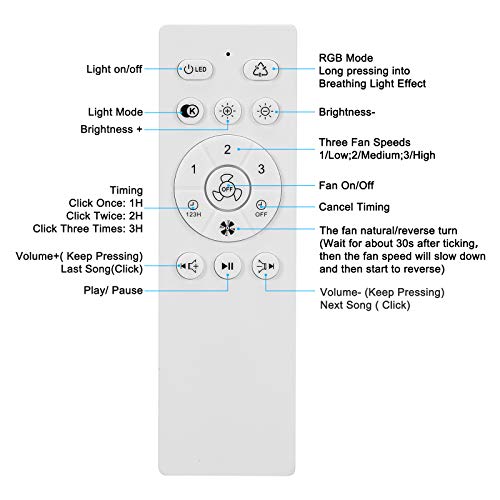 【Funzioni utili】 La funzione musicale, l'altoparlante Bluetooth di alta qualità ti consente di ascoltare ottima musica a casa. Cambi colore RGB, temperatura colore 2700k-6500k, luce dimmerabile, funzione timer (spegnimento automatico 1/2/3H), 3 velocità, tutte queste funzioni possono essere facilmente controllate da remoto.