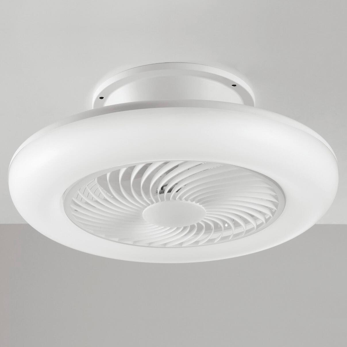 Ventilatore LED integrato con 7 pale reversibili, diametro 60 cm. Ideale per ventilare un ambiente fino a 20 m². Regolabile, a 3 step di velocità. Telecomando incluso