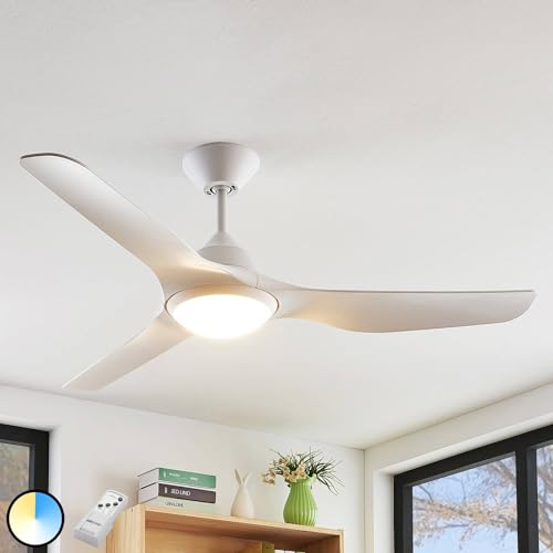 Ventilatore da soffitto con lampada 'Pira' a controllo remoto (Moderno) colore Bianco, ad es. Soggiorno & Sala da pranzo (1 luce, lampadina inclusa) di Starluna | Ventilatore