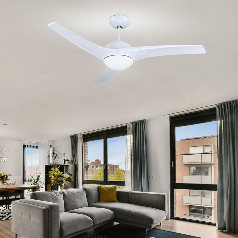 Descrizione Questo moderno ventilatore da soffitto attira davvero l'attenzione. Materiali coordinati e un design moderno caratterizzano questo ventilatore da soffitto di prima classe, anche reale. La combinazione di metallo di alta qualità e vetro raffinato costituisce la base brillante e conferisce alla tecnologia sottile un corpo non solo elegante ma anche robusto. il cuore di questo ventilatore è il motore silenzioso e potente da 52 W, ideale per stanze con una dimensione di 25-30 m². Questo motore può essere azionato non solo tramite un interruttore a parete, ma anche tramite il telecomando fornito appositamente per questo scopo. Se fa di nuovo caldo, sia sul lavoro che a casa, questo ventilatore da soffitto porta il tanto atteso raffreddamento, perché un flusso d'aria verso il basso crea un effetto di raffreddamento. È possibile impostare tre livelli di velocità, da 80 giri a 175 giri al minuto. Poiché l'aria calda sale fino al soffitto del soggiorno, è possibile utilizzare