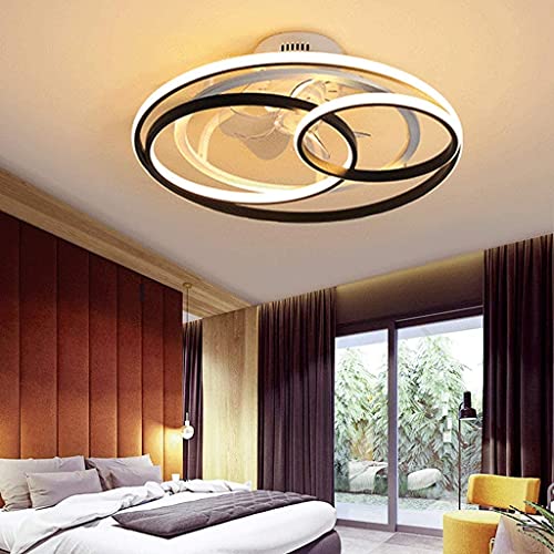 Ventilatore Da Soffitto LED Con Lampada Moderno Anello Spirale Tipo Dimmerabile Fan Plafoniera Velocità Del Vento Regolabile Soggiorno Camere Ufficio Lampadario Ventaglio Illuminazione,Black 53cm/50w