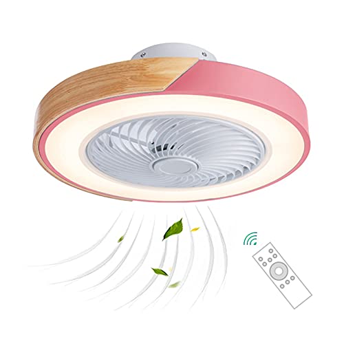 Ventilatore da soffitto in legno con illuminazione e telecomando, silenzioso, lampada da soffitto dimmerabile con timer, velocità del vento regolabile Invisible Fan LED Plafoniera, 40 W x 2, Rosa