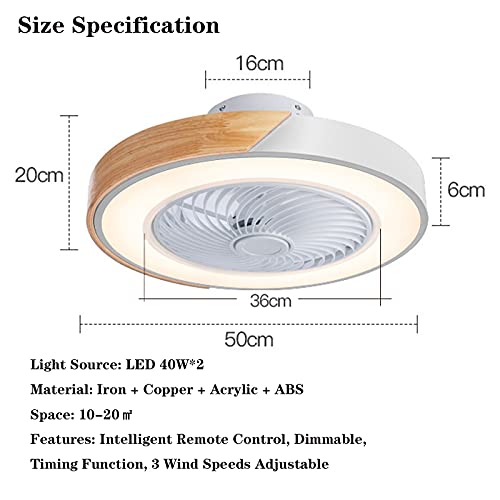 Materiale: ferro, legno, acrilico, ABS. Dimensioni e potenza: 50 cm x 50 cm x 20 cm. Bassa durata del rumore della plafoniera della ventola: l'intera ventola è realizzata in materiale ABS spesso, e lo spessore della ventola è di 3 mm, quindi la ventola è facile da pulire, senza intoppi e sicuri