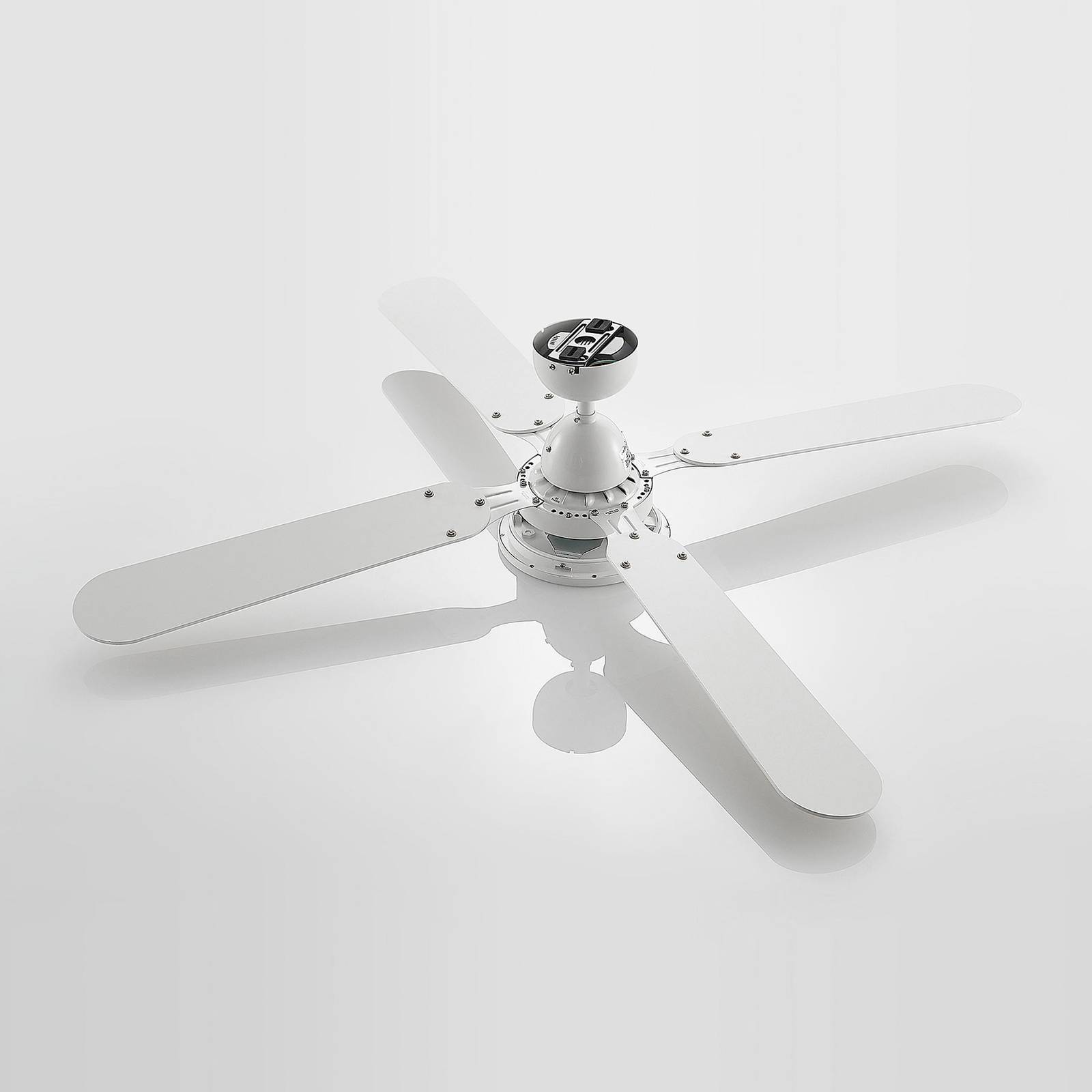 Tedric è un pratico ventilatore da soffitto in MDF in faggio e acciaio con telecomando, dotato di LED installati permanentemente che producono una luce bianca calda. L'alloggiamento è in acciaio, mentre le pale sono in legno di faggio. La combinazione di colori del legno chiaro e del bianco gli conferisce un aspetto armonioso. Funzioni La luce e la rotazione del ventilatore da soffitto Tedric possono essere facilmente controllate con il telecomando in dotazione. Inoltre, un interruttore sull'alloggiamento consente di passare dalla marcia avanti alla retromarcia. Dati tecnici: Velocità del motore: 180/100/56 giri/min Potenza: 54/16/7,2 watt Portata massima: 2,17 m³/min Consumo di energia del ventilatore (P): 54 W Valore di servizio (SV): 2,17 (m³/min)/W (IEC60879:1986) Consumo di energia in standby (PSB): 0,5 W Velocità massima dell'aria (c): 1,61 metri/sec Livello di potenza sonora del ventilatore (LW): 48,9 dB (A)