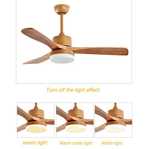 Ventilatore Da Soffitto Moderno Europeo Con Pale In Legno Di Sicomoro Color Legno E 3 Luci Di Conversione A Colori 24w Luci A Led A Risparmio Energetico, Soggiorno Da Letto Con Lampadario A Parete