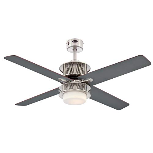Ventilatore da soffitto in nichel spazzolato per interni da 122 cm Westinghouse Lighting Oscar con luce e telecomando, fissaggio con luce LED dimmerabile con vetro smerigliato opale