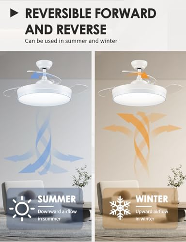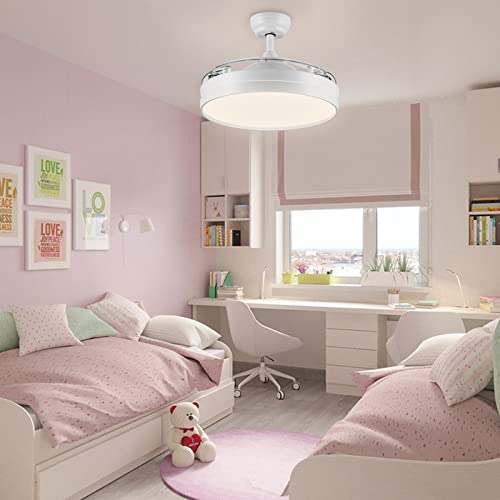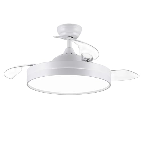 CJOY Ventilatore da Soffitto Retrattile con Luce e Telecomando, Ventilatore da Soffitto Scalabile Bianco 107 cm, Lampadario Ventilatore Soffitto Invisibile 3 Pale, 6 Velocità, DC Reversibile