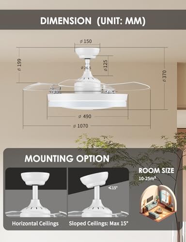 【Facile da Installare】Ha un diametro di 42 pollici(107 cm), 3-pale e un sistema di sospensione per bilanciare la ventola. Le luci LED in dotazione illuminano la stanza. Le istruzioni allegate al pacchetto descrivono il metodo di installazione e i passaggi in dettaglio. Se avete domande, vi preghiamo di contattarci prima via e-mail. Faremo del nostro meglio per risolvere il problema per voi.