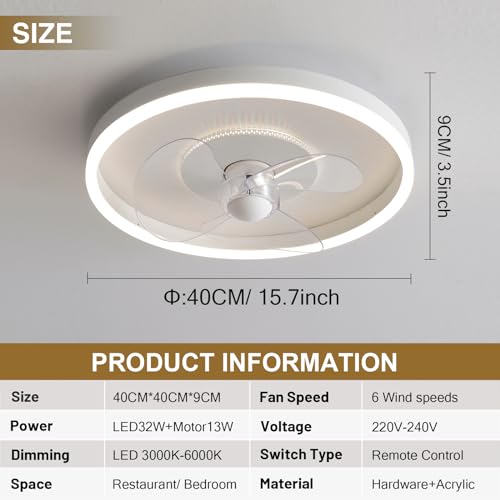 40CM Ventilatore Da Soffitto Silenzioso Lampada Per Camera Da Letto Ventilatore Da Soffitto Con Luce E Telecomando LED Dimmerabile 6 Velocità Motore DC Reversibile Lampada Ventilatore Soffitto