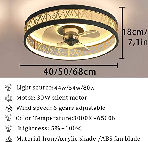 Ventilatore Da Soffitto Con Luce Ventilatore Da Soffitto A LED Ventilatore Silenzioso Con Telecomando Lampada Da Soffitto Dimmerabile, Ventilatore Rotondo in Oro Nero Lampada Da Soffitto