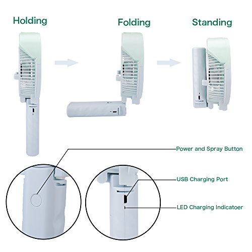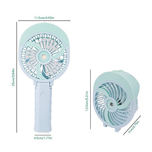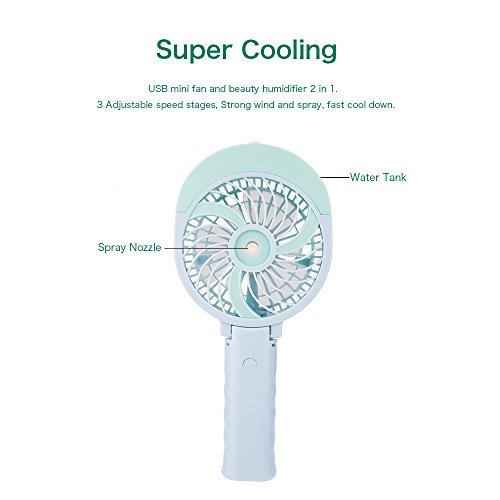 Forte esperienza di raffreddamento: Mini ventilatore USB e umidificatore di bellezza 2 in 1. Pale ventilatore 6PCS, 3 stadi di velocità regolabili, forte vento e nebbia. Il motore senza spazzola rende il ventilatore robusto e durevole. Mist per raffreddamento e umidificazione dell'aria, ma non lasciatevi sentire bagnati e scomodi.