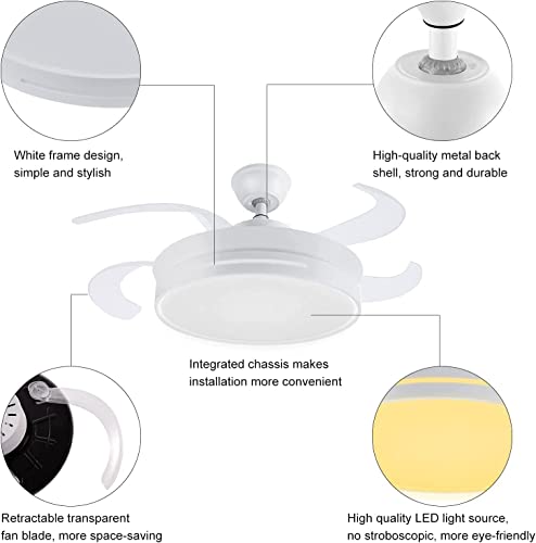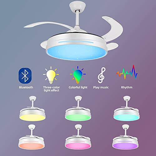 24W Ventilatore da soffitto con Telecomando, Dimmerabile Ventilatori a Soffitto con Altoparlante Bluetooth e Reversibile, Ventilatore da Soffitto con Lampada e pale a scomparsa per Camera da Letto