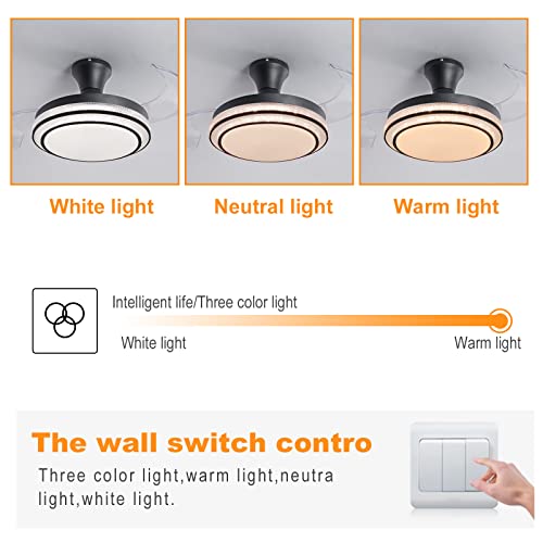 【3 Temperatura di Colore】 La plafoniera con ventilatore ha 3 temperatura di colore può essere selezionata, 3000K (luce gialla) / 4000K (luce naturale) / 6500K (luce bianca fredda). Puoi scegliere luci diverse per scene diverse.