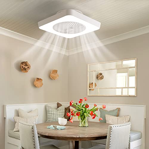 Ventilatore da Soffitto con Luce,Ventilatori Soffitto con Telecomando Moderna,58W LED Ventilatore Vortice Lampada Dimmerabile regola la velocità del vento,Invisibile e Silenzioso(Bianco)