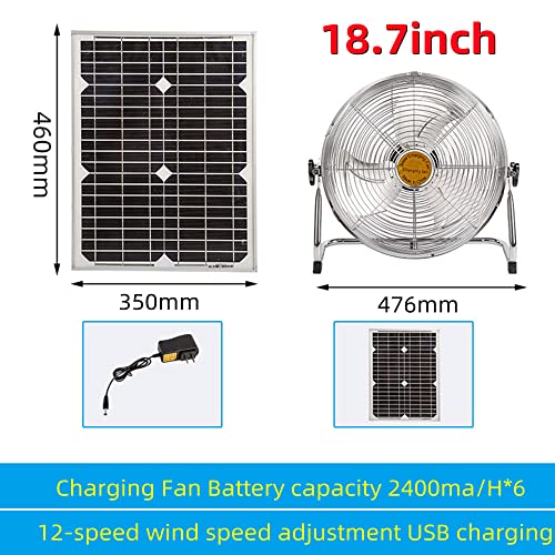 Mini Ventilatore Solare, Ventola di Raffreddamento Portatile Ad Energia Solare, Ventilatori Esterni Ricaricabili, Ventilatore A Batteria USB 15600 mAh, per Patio, Campeggio, Tenda,18.7 inch