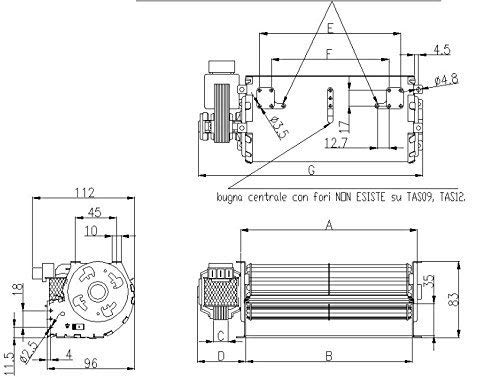 Ventilatore Tangenziale DN 60 ventola cm 24 motore SINISTRO UNIVERSALE