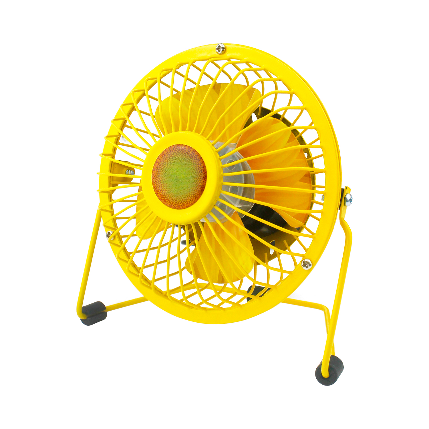 Il ventilatore dal design piccolo, compatto e floreale è perfetto per rinfrescarti in ufficio o quando studi e lavori in smartworking a casa. Leggero e facile da spostare, puoi portarlo con te ovunque vai e per utilizzarlo basta avere a portata di mano un computer o un altro dispositivo dotato di uscita USB a cui collegarlo. Perfetto da posizionare sulla scrivania porterà subito un po' di fresco nelle giornate più afose, rendendo più facile anche la concentrazione. La particolarità di questo modello è data dal decoro a fiore con petali gialli ispirati al Girasole: una perfetta idea regalo per amici e colleghi che soffrono il caldo. Stabile e silenzioso, è orientabile verticalmente per direzionare il flusso d'aria come preferisci. L'accensione è pratica tramite interruttore ON/OFF e il cavo usb in dotazione è lungo 90 cm. Potenza: 2,5 W. Dimensioni: 14,6x13,5x7 cm.