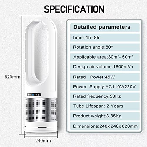 【Ventilatore a torre senza lama】 L'anello del vento esteso espelle il vento, nessuna ventola rotante e non fa male alle mani. Calotta liscia in ABS, corpo snello, nessun componente elettronico esposto, più sicuro. Anche più facile da pulire.