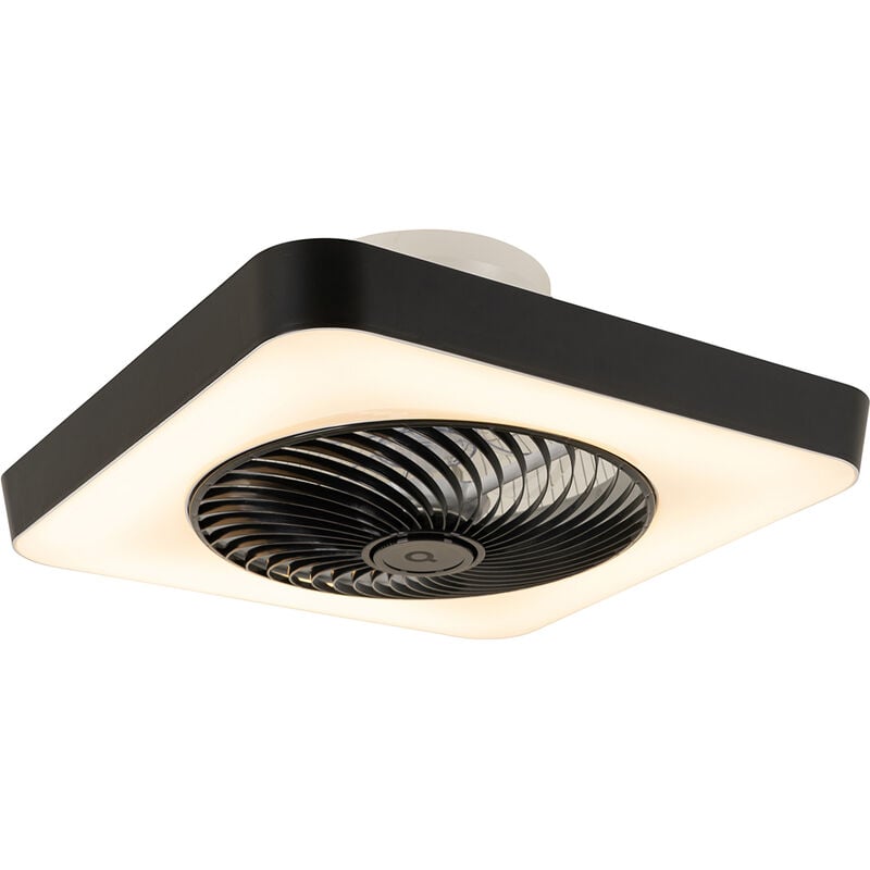 QAZQA Ventilatore da soffitto intelligente quadrato nero incl. LED dimmerabile - Climo Rinnova la tua stanza con il ventilatore da soffitto intelligente Climo, la combinazione perfetta di illuminazione e raffreddamento! Questo elegante ventilatore, realizzato in plastica e acciaio, è disponibile in bianco con dettagli argentati. Con una profondità di 55 cm, un'altezza di 23,5 cm e una lunghezza di 55 cm, Climo si adatta a qualsiasi interno. La piastra di montaggio ha un diametro di 22,2 cm e un'altezza di 8,5 cm. Controlla facilmente l'illuminazione LED intelligente del ventilatore tramite l'app LUUMR o il tuo assistente domestico. Climo è dotato anche di un pratico telecomando. Il suo LED integrato ha un'emissione luminosa di 1.300 lumen e una temperatura di colore di 3.000 - 6.500 Kelvin, ideale per l'utilizzo come illuminazione funzionale. Con una durata di 30.000 ore di funzionamento e la possibilità di dimmerare tramite l'app o il telecomando, Climo offre la massima facilità