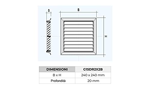 La Ventilazione G15DR2X2B Griglia Plastica con Dosatore Quadra da Sovrapporre, Bianco, 240x240 mm