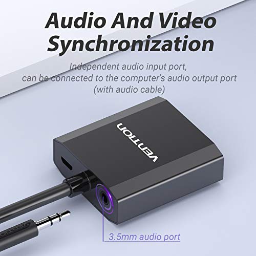 VENTION - Adattatore da VGA a HDMI, convertitore da Dsub a HDMI 1080P VGA (computer, computer portatile) a HDMI (TV, display, proiettore) analogico a cavo digitale (guscio in lega)