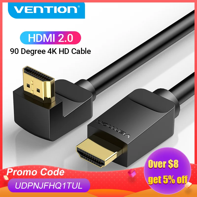 Vention HDMI Cable 4K HDMI 2.0 Cable HDMI 90/270 Degree Angle Adapter for Apple TV PS4 Splitter Video Audio 90 Degree HDMI Cable