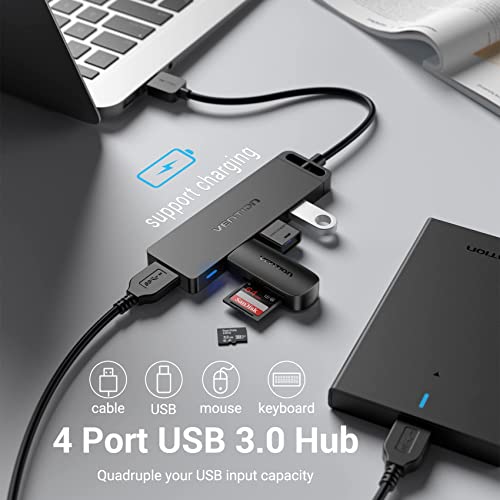 Hub USB 3.0, VENTION Porte Usb Multiple per PC 4 Porta Sdoppiatore USB Ultra Sottile Splitter per Laptop, Mac Mini/Pro, Surface Pro/XPS/ PS4/5 (0,15m)