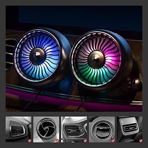 Ventola USB per auto con ventola di raffreddamento automatica con luce colorata/ventosa, ventilatore USB per auto, mini condizionatore d'aria per auto (argento)