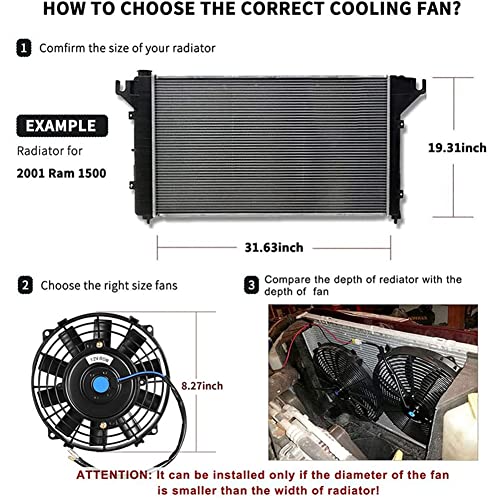 Più dimensioni tra cui scegliere: 7 pollici / 9 pollici / 10 pollici / 12 pollici / 16 pollici, assicurarsi che la larghezza e la profondità della ventola di raffreddamento siano inferiori alla larghezza e alla profondità del radiatore prima dell'installazione