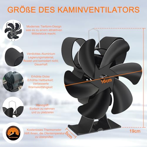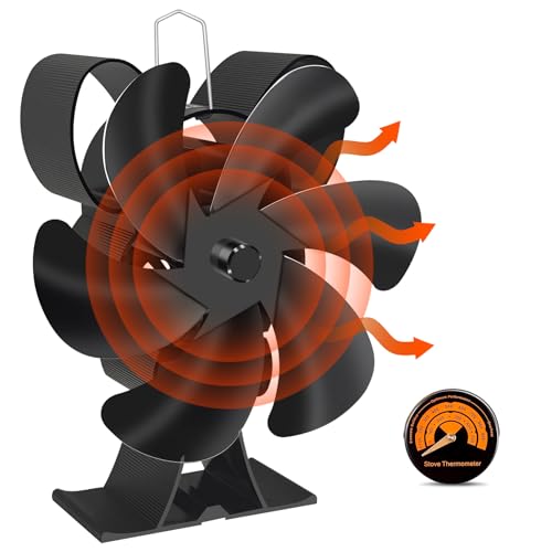 Ventola per Stufa a 6 Pale Ventilatore per Stufa a Legna Ventilatore per Bruciatore di Tronchi Ventola per Camino conTermometro, Protezione Dal Surriscaldamento per Aumentare la Temperatura Interna