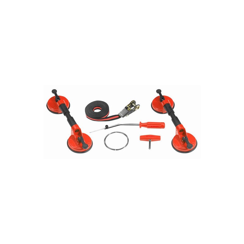 Dettagli: Include: Ventose (2x). Cinghia a cricchetto. Leva di smontaggio. Estrattore di filo. Filo del parabrezza intrecciato (18 m). Peso: 3,300 kg.