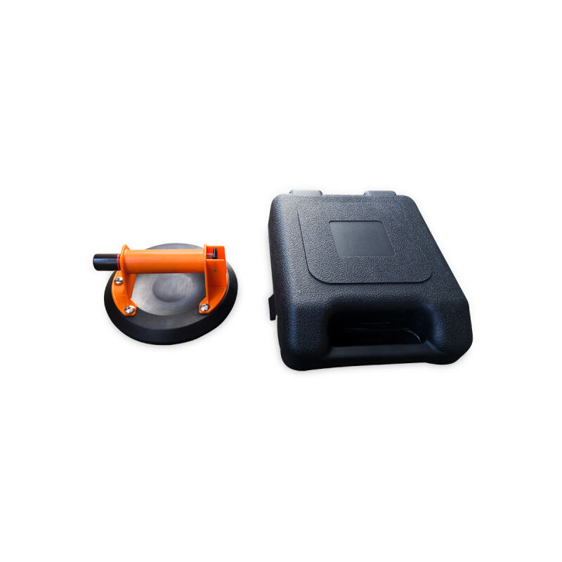 Dettagli: 1 testa Ø 200 mm. Con marchio di pressione necessario. Portata massima a pavimento: 70 kg. Portata massima a parete: 60 kg. Per piastrelle e superfici lisce. Valigia di trasporto inclusa.
