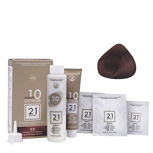 21 VENTUNO Tinta per Capelli Professionale fai da te Copertura Capelli Bianchi in 10 minuti Senza Parabeni Castano Chiaro Mogano 5.5 MADE IN ITALY