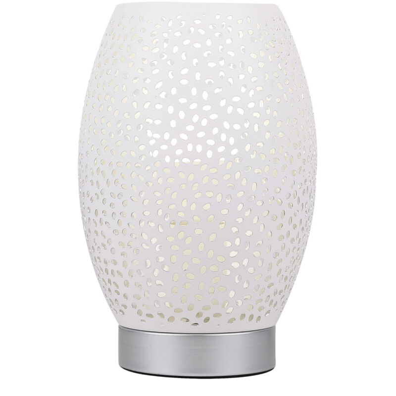 Materiale: base in acciaio, paralume in acciaio Colore base: bianco Altezza: 23 Larghezza: 15 Profondità: 15 Dimensioni (altezza/larghezza/profondità): 23x15x15 Peso (netto): 0,48 LED integrato: No Numero di sorgenti luminose: 1 Sorgente luminosa inclusa: No Numero di sorgenti x presa: 1xE27