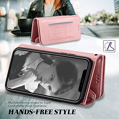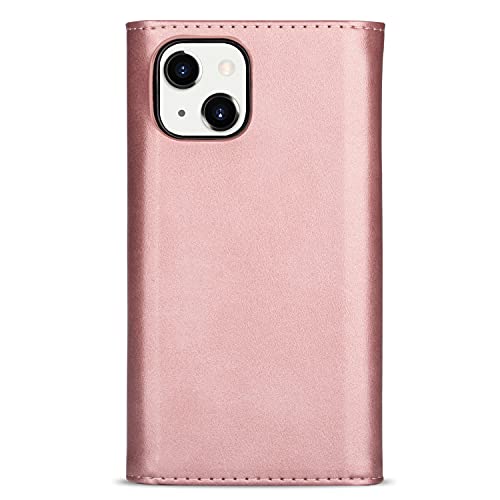 Vepbk per iPhone 13 Cover, Custodia Case Portafoglio Cover in Pelle con Porta Carte Cordino Cinturino Libro Silicone Bumper Flip Wallet Supporto Antiurto Custodia per iPhone 13,Oro Rosa