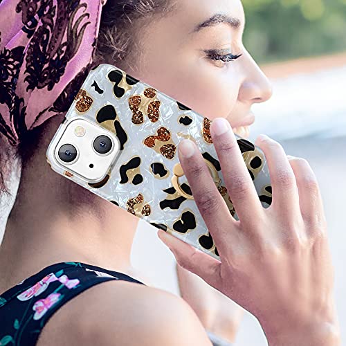 VePret Compatibile con Custodia iPhone 13 per Donne Ragazze, Leopard Cheetah Design Supporto per Anello di Rotazione a 360 Gradi Supporto Custodia Morbida in Silicone Protettiva, Leopard [con Anello]