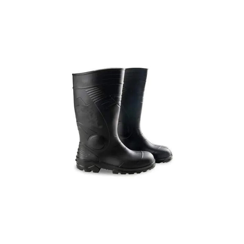 Stivali di sicurezza, neri, in tela rivestita di PVC, misura 43 VEPRO riferimento BOTTESECURITE43. Stivali di sicurezza in PVC S5. Resistente agli idrocarburi, antistatico, puntale in acciaio, suola antiscivolo, etichetta riflettente sul tallone. Taglia 43.
