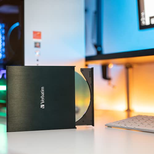 Verbatim Lettore CD/Dvd Esterno Slimline - USB 3.2 Gen1 con Porta USB-C con Cavo USB-C a USB-A e Design Compatto da Viaggio, in Metallo Spazzolato